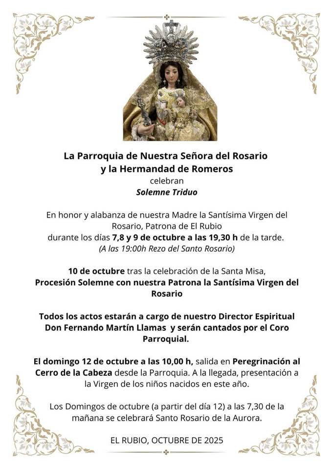 CULTOS Y ACTOS EN HONOR A LA VIRGEN DEL ROSARIO