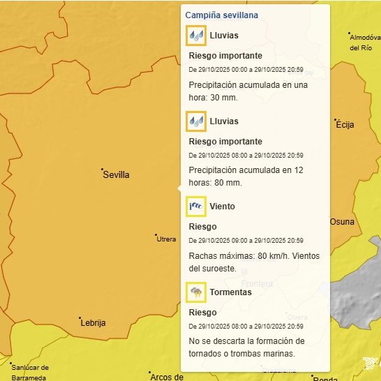 LA AGENCIA ESTATAL DE METEREOLOGÍA ESTABLECE EL NIVEL NARANJA POR LLUVIAS Y AMARILLO POR VIENTO Y TORMENTAS