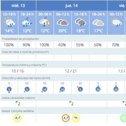 Previsión de lluvias y tormentas