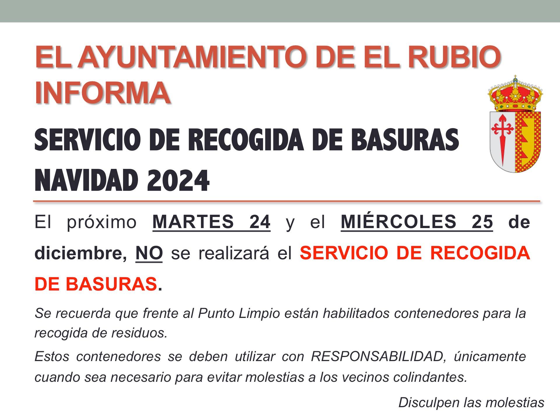 Servicio de recogida de basuras los días de Nochebuena y Navidad