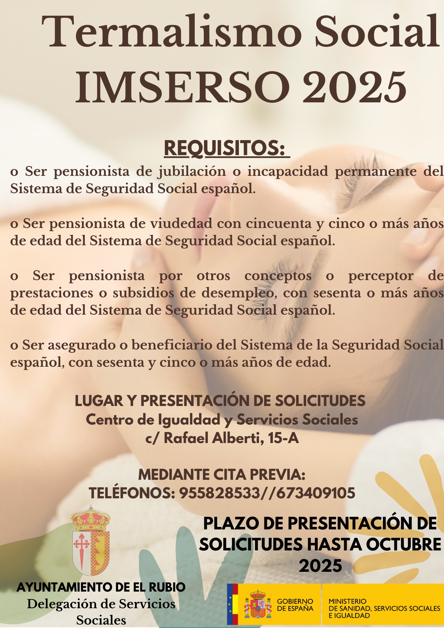 LUGAR y PRESENTACIÓN DE SOLICITUDES: Centro de Igualdad y Servicios Sociales en C/Rafael Alberti nº15-A. Hasta octubre 2025