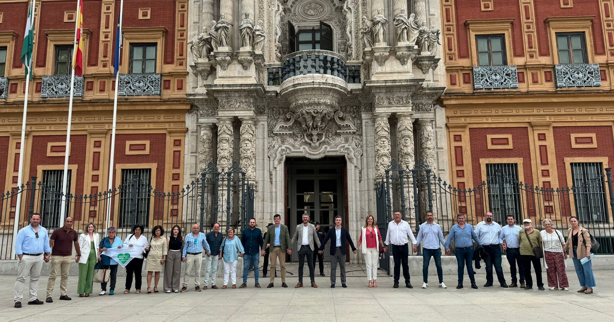 Los 24 alcaldes y alcaldesas del Área Sanitaria de Osuna y representantes de Marea Blanca, acudieron al Palacio de San Telmo, sede de la Presidencia de la Junta de Andalucía, para exigir una reunión de carácter urgente con el presidente Juan Manuel Moreno Bonilla