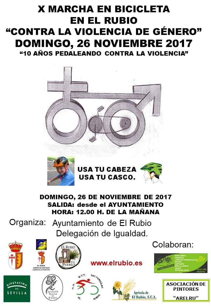 X MARCHA EN BICICLETA EN EL RUBIO "CONTRA LA VIOLENCIA DE GÉNERO" DOMINGO, 26 NOVIEMBRE 2017. "10 AÑOS PEDALEANDO CONTRA LA VIOLENCIA"