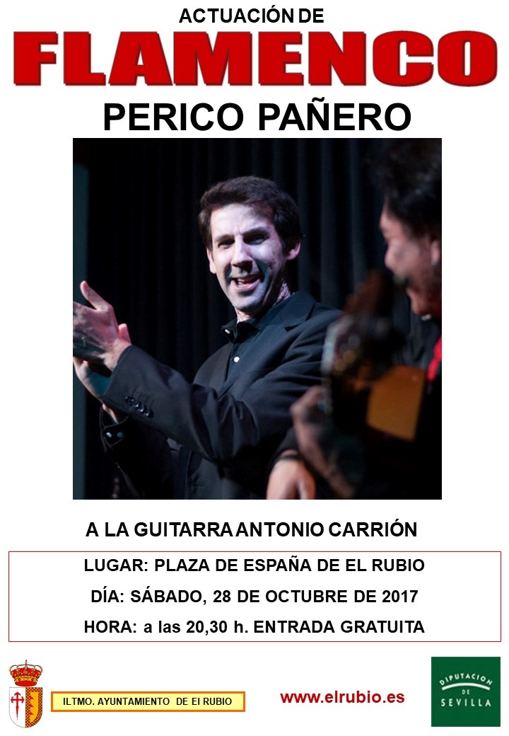 FLAMENCO: PERICO PAÑERO PLAZA DE ESPAÑA DE EL RUBIO SÁBADO, 28 DE OCTUBRE DE 2017 a las 20,30 h. ENTRADA GRATUITA