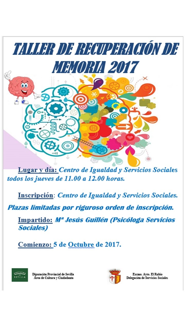 Lugar y día: Centro de Igualdad y Servicios Sociales todos los jueves de 11.00 a 12.00 horas. Inscripción: Centro de Igualdad y Servicios Sociales. Plazas limitadas por riguroso orden de inscripción. Impartido: Mª Jesús Guillén (Psicóloga Servicios Sociales) Comienzo: 5 de Octubre de 2017.