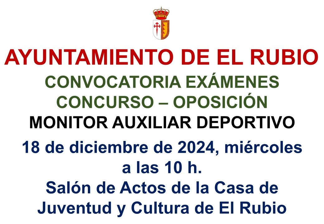 CONVOCATORIA DE EXÁMENES CONCURSO - OPOSICIÓN MONITOR AUXILIAR DEPORTIVO