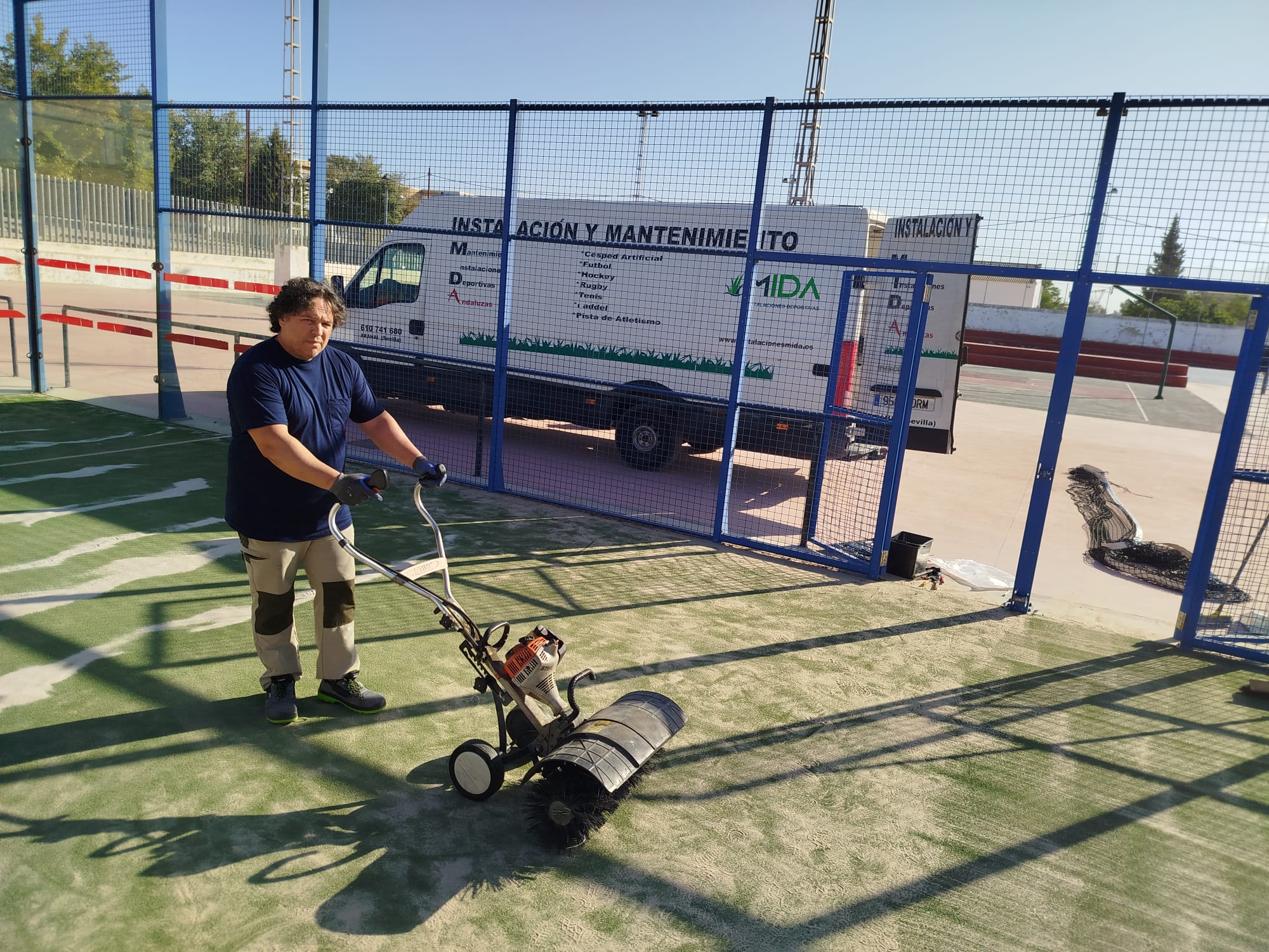 También se ha procedido al descompactado para evitar que las fibras del césped se tumben y pierdan sus propiedades físicas y se desgasten de forma prematura.