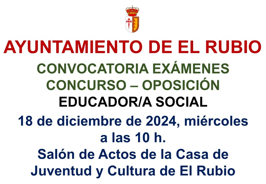 Lista Definitiva. Concurso Oposición. Listas definitivas de admitidos y excluidos, y nombramiento del Tribunal Calificador, en las convocatorias para la selección mediante el sistema de concurso Oposición de personal laboral fijo del Ayuntamiento de El Rubio para una plaza de Educador-a Social y otra de Monitor Auxiliar Deportivo