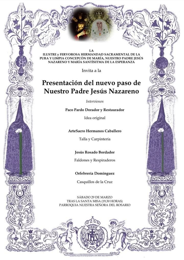 PRESENTACIÓN DEL NUEVO PASO DE NUESTRO PADRE JESÚS NAZARENO