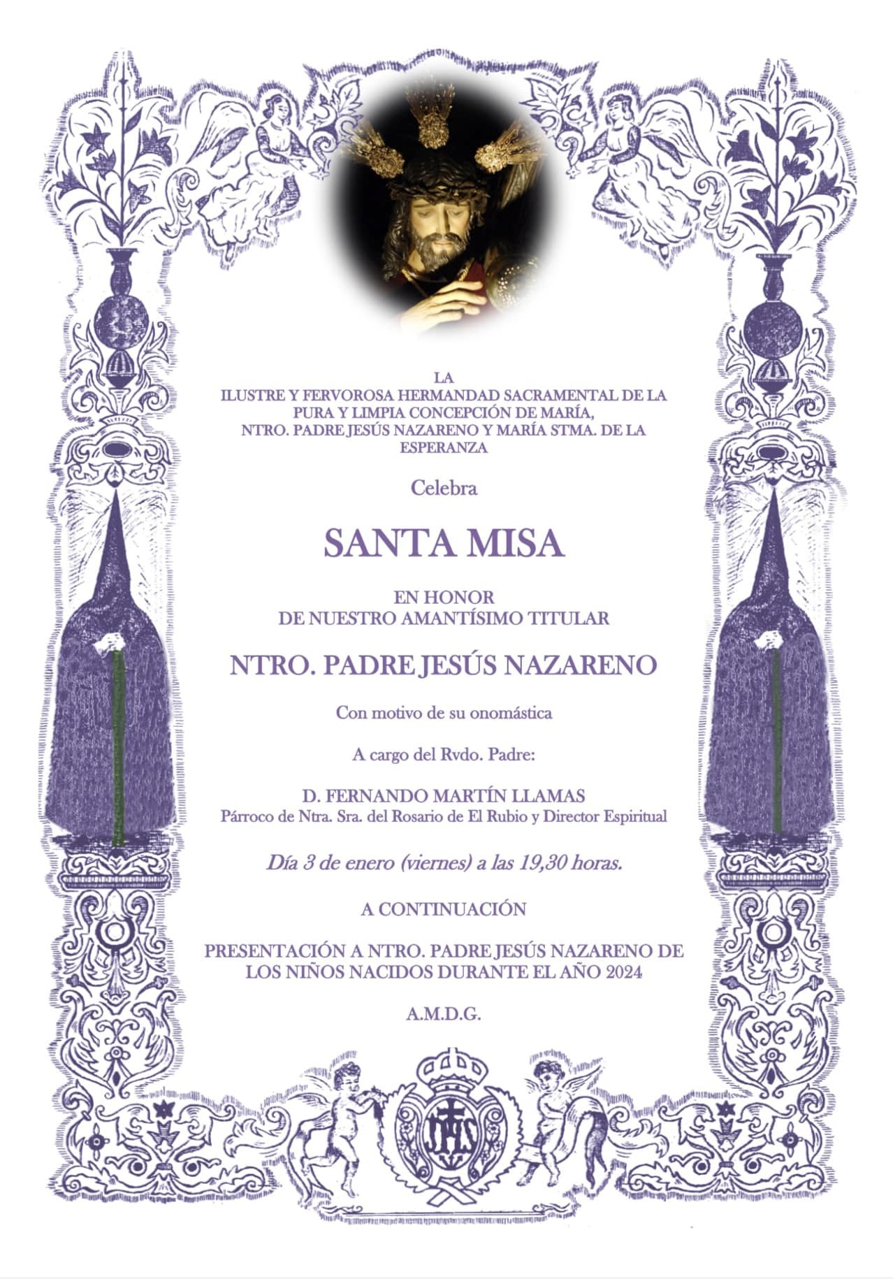 SANTA MISA EN HONOR A NUESTRO AMANTÍSIMO TITULAR NUESTRO PADRE JESÚS NAZARENO
