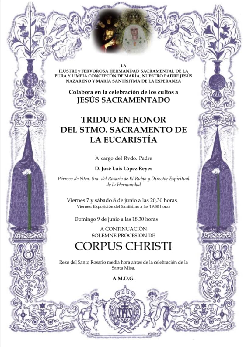 SOLEMNE TRIDUO EN HONOR DEL SANTÍSIMO SACRAMENTO DE LA EUCARISTÍA
