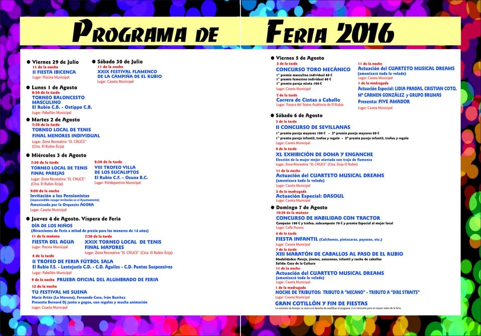 VÍSPERA EL DÍA 30 Y PRIMER DÍA EL 31 DE AGOSTO, SÁBADO 1 Y DOMINGO 2 DE SEPTIEMBRE.
