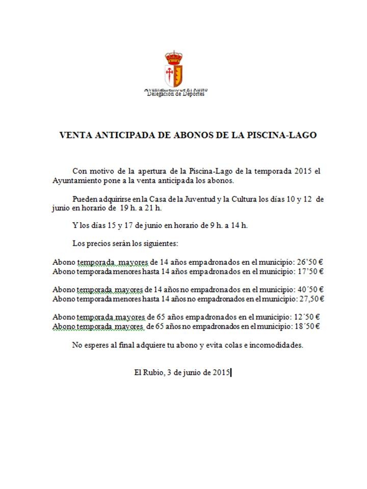 VENTA ANTICIPADA DE ABONOS 2015.