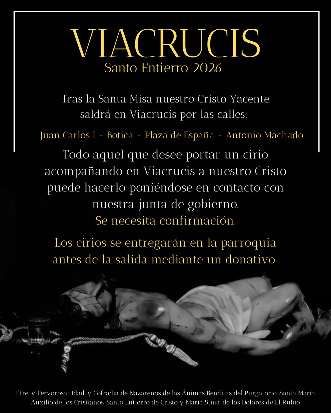Cultos | Solemne Misa y posterior viacrucis de nuestro Cristo Yacente.