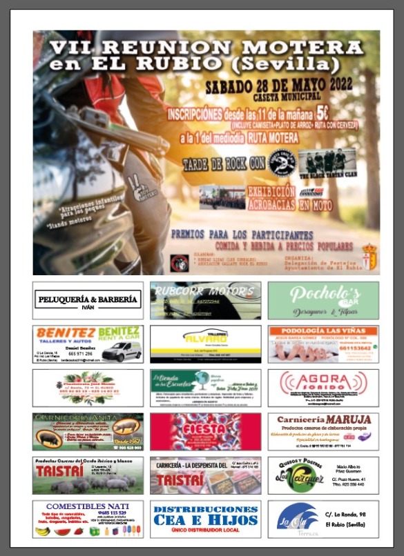 El sábado 28 de mayo no te puedes perder la VII REUNIÓN MOTERA que se realizará en la Caseta Municipal de EL RUBIO.
