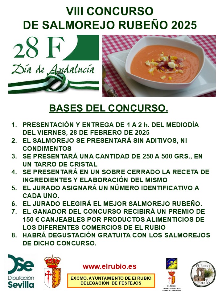 Para celebrar el Día de Andalucía, no hay nada mejor que disfrutar de un buen salmorejo, uno de nuestros los platos más típicos. Apúntate al VIII Concurso de salmorejo, que se celebrará el próximo 28 de febrero
