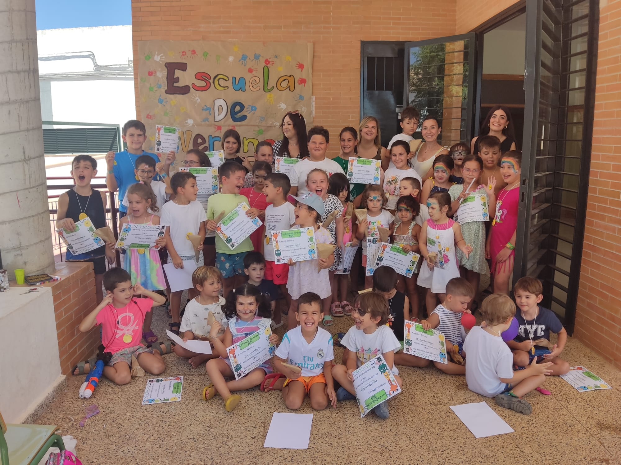 En esta edición, la Escuela de Verano ha finalizado las clases con una gran fiesta del agua. Además, tod@s l@s participantes han festajado el último día con una merienda y han sido obsequid@s con un diploma, una medalla realizada por ell@s mism@s y un detalle.