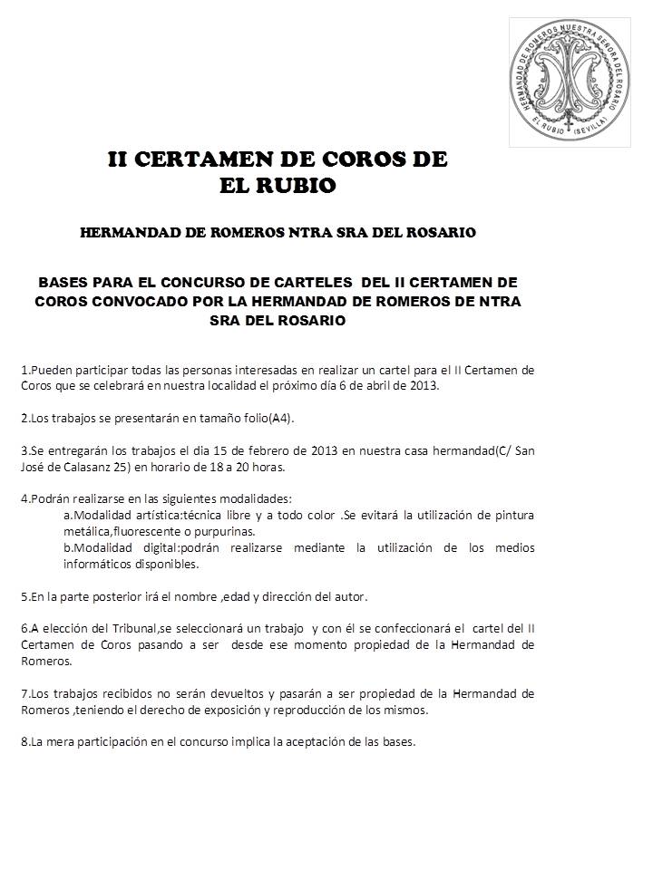 BASES PARA EL CONCURSO DE CARTELES DEL II CERTAMEN DE COROS CONVOCADO POR LA HERMANDAD DE ROMEROS DE NTRA SRA DEL ROSARIO