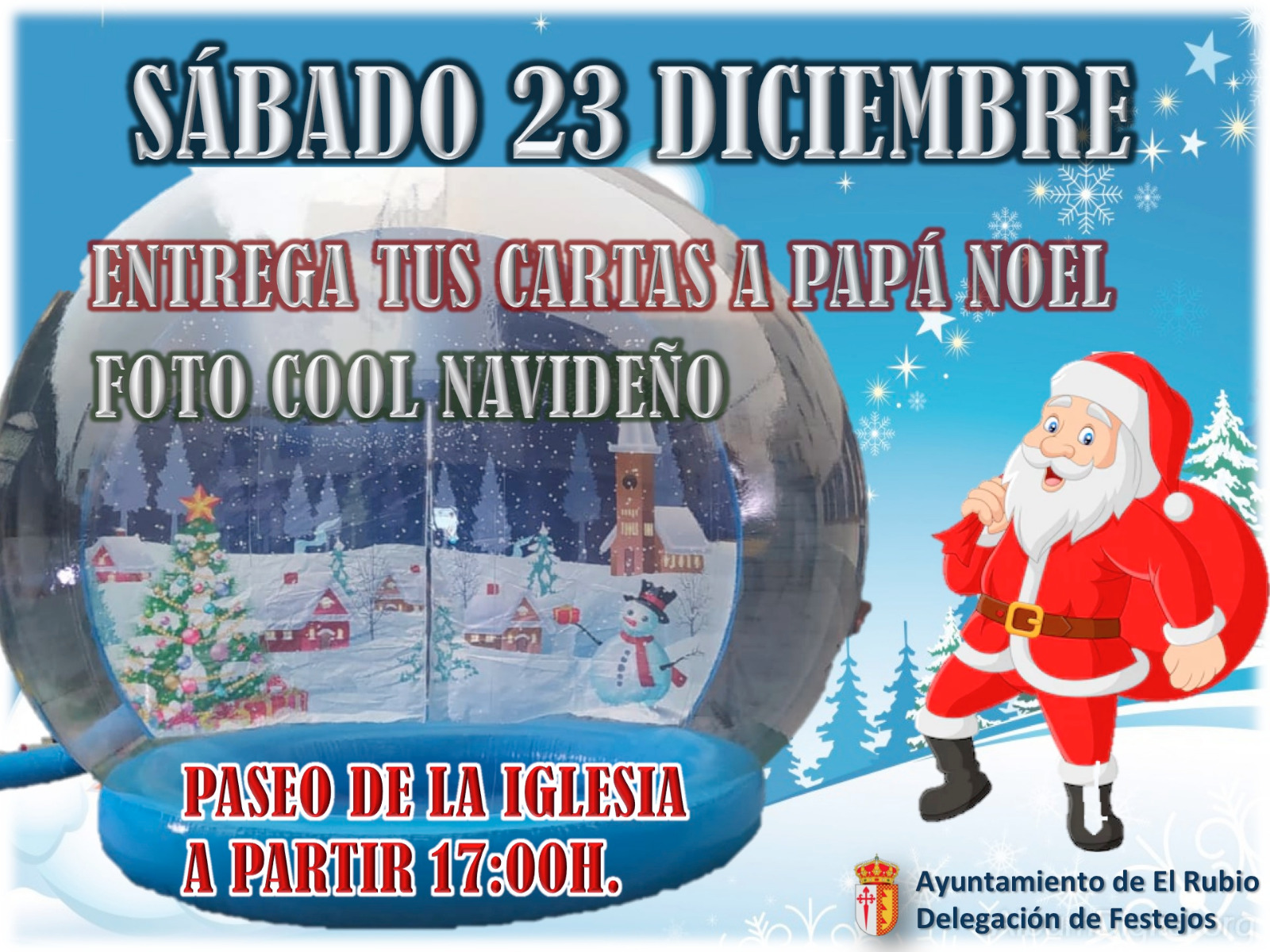 El sábado 23 de diciembre tod@s l@s niñ@s podrán entragar sus cartas de navidad a PAPÁ NOEL y hacerse fotos en la bola gigagnte preparada como FOTO COOL NAVIDEÑO.