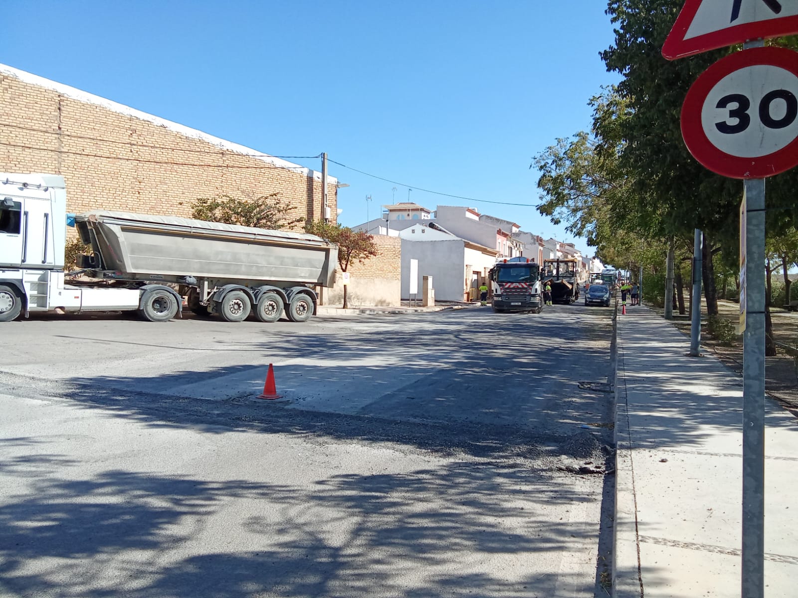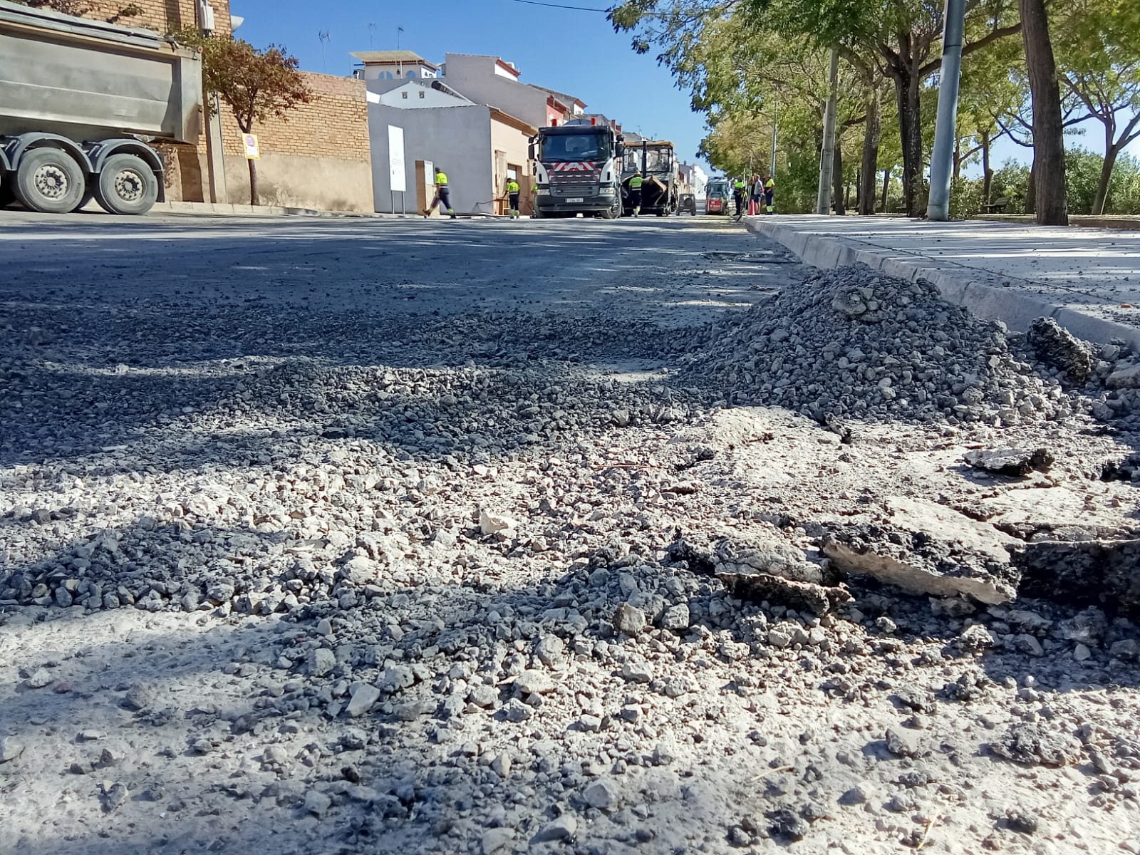 A lo largo de esta mañana se están realizando trabajos de fresado y alquitranado en dos puntos de la localidad. Estas intervenciones consisten en la retirada del firme de la carretera en mal estado para repararlo posteriormente con una nueva capa de alquitrán.