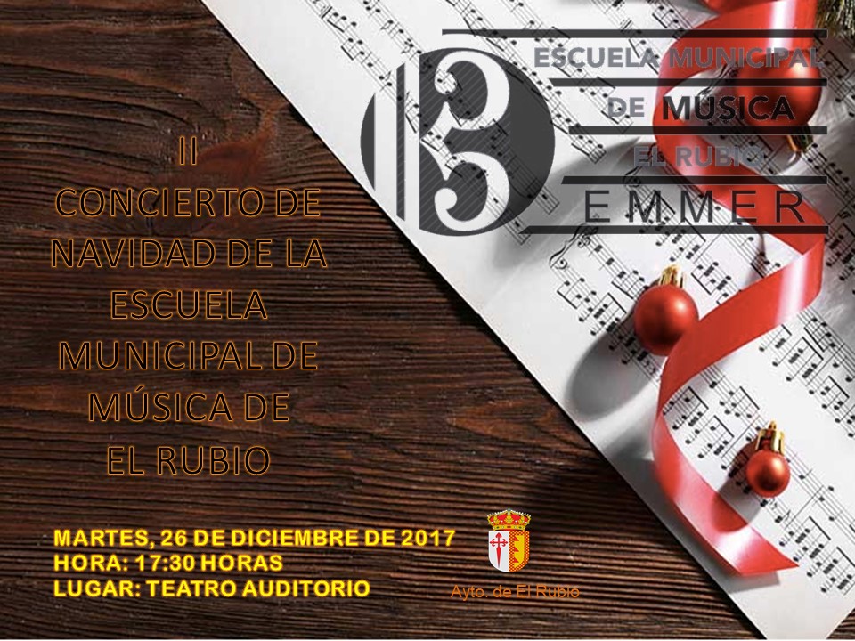 II CONCIERTO DE NAVIDAD DE LA ESCUELA DE M. DE MÚSICA E.R. TEATRO AUDITORIO DE EL RUBIO HORA: 17,30 h.