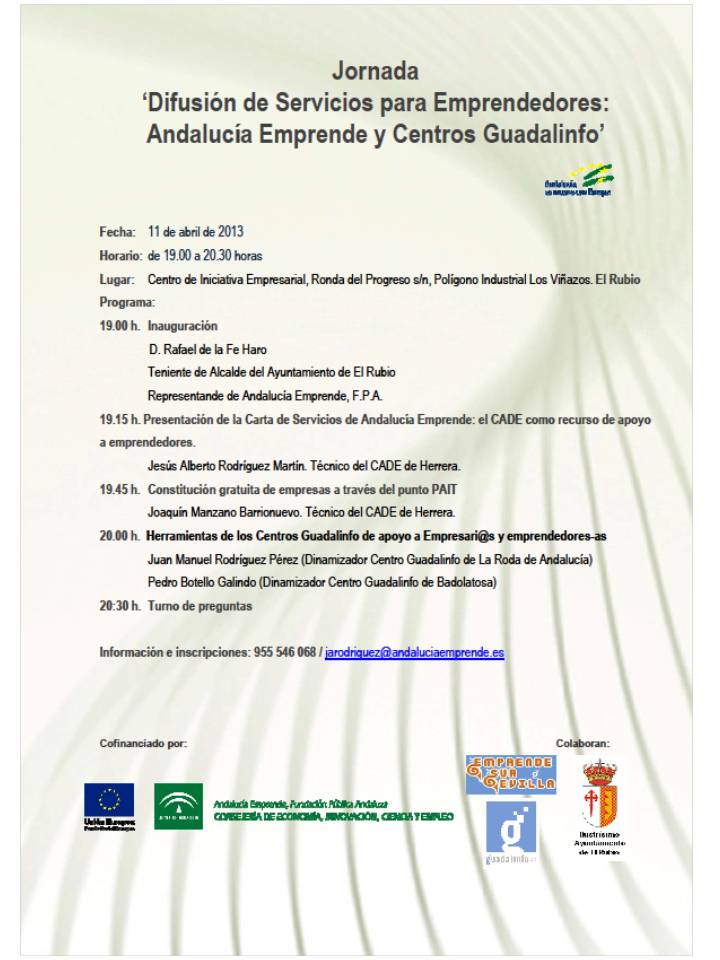 Información e inscripciones: 955 546 068 / jarodriguez@andaluciaemprende.es