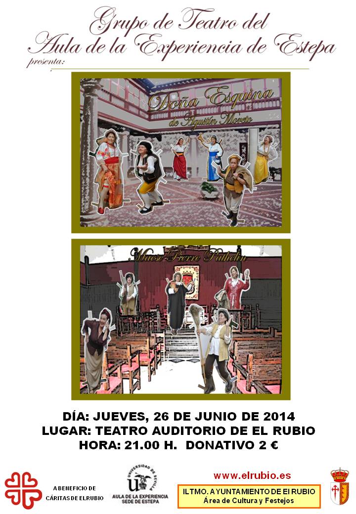 JUEVES, 26 DE JUNIO, TEATRO A BENEFICIO DE CÁRITAS EN EL RUBIO.
