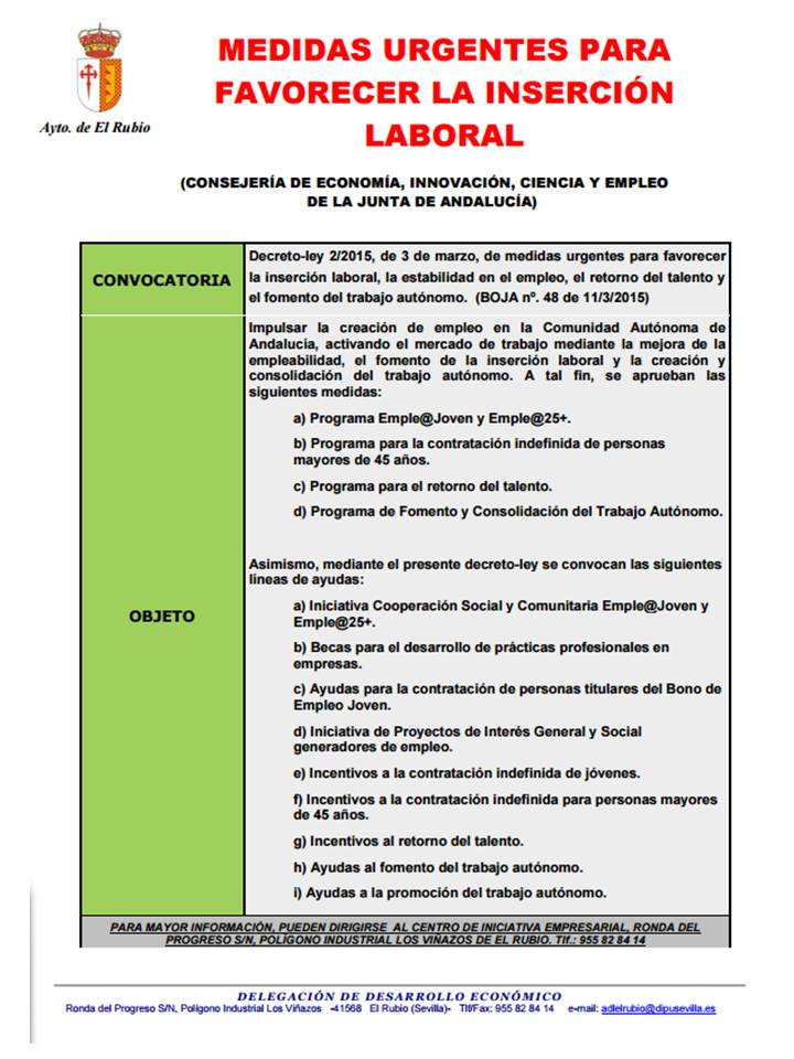 MEDIDAS URGENTES PARA FAVORECER LA INSERCIÓN LABORAL.