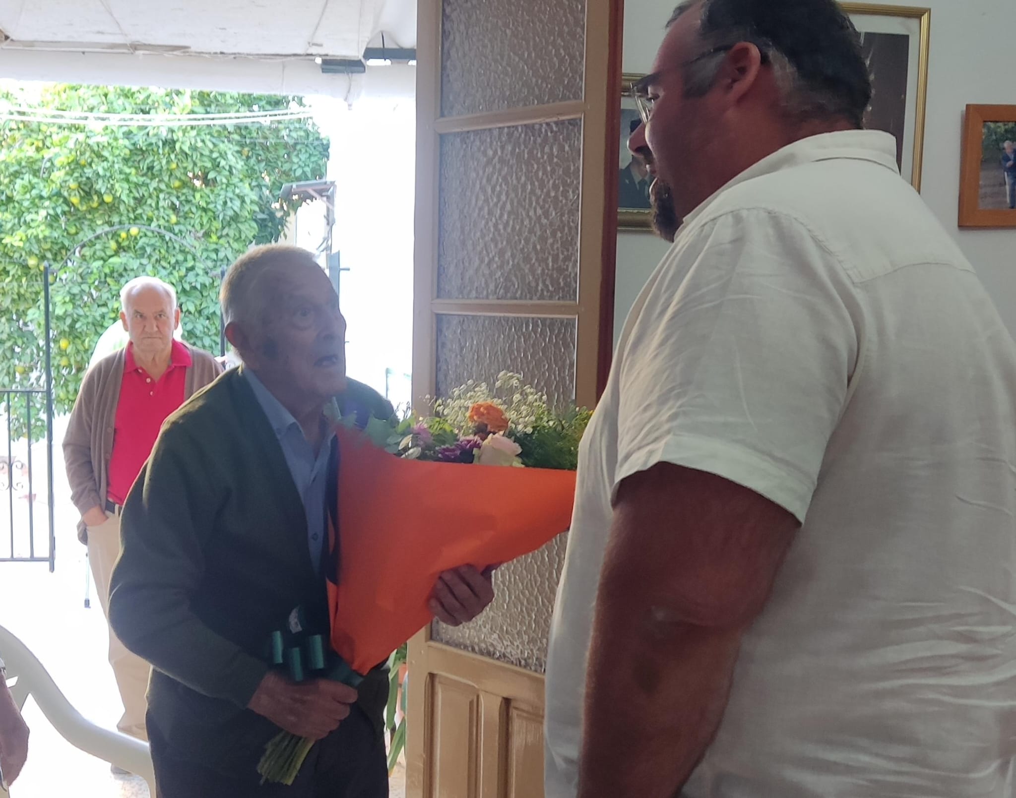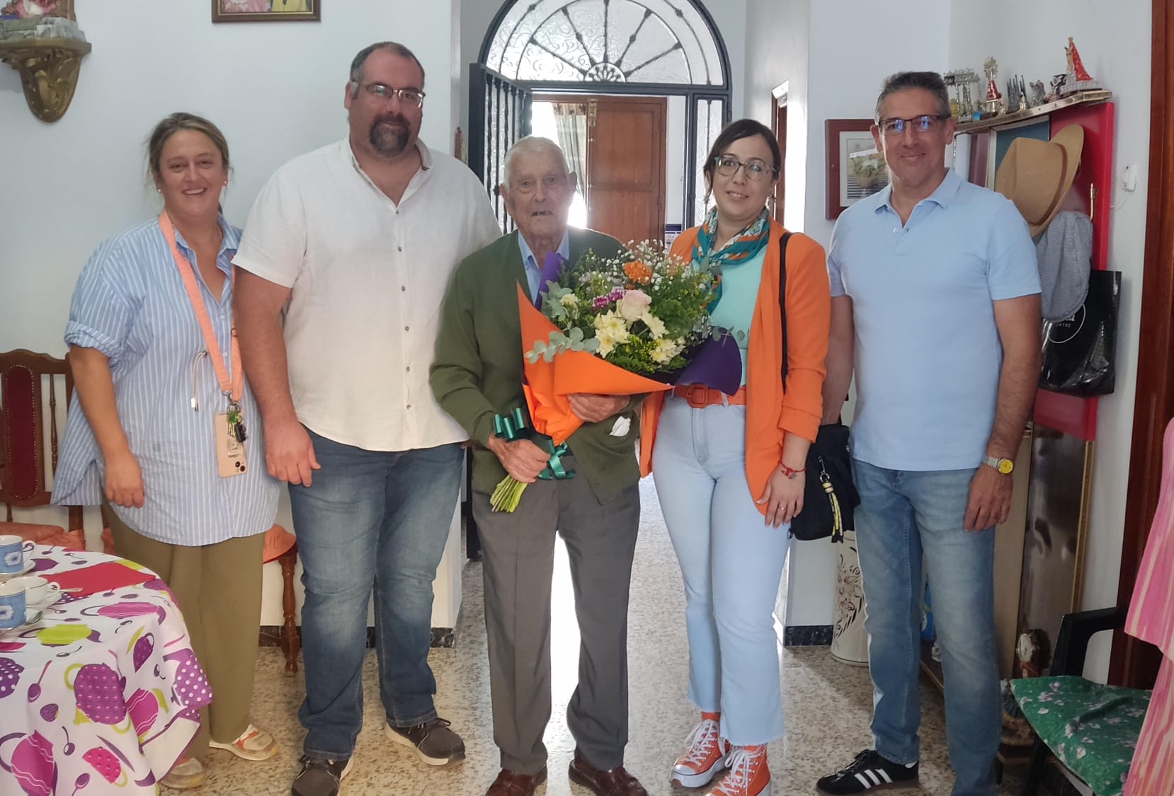 Por la tarde, el Alcalde, Jesús Guerra, acompañado por los concejales, Manuel Ignacio Pardillo, Ana Belén Prados y Virginia Borrego fueron a visitarlo a su casa para felicitarlo en nombre de todo el pueblo de El Rubio en un gesto de afecto y cariño para nuestro vecino centenario.