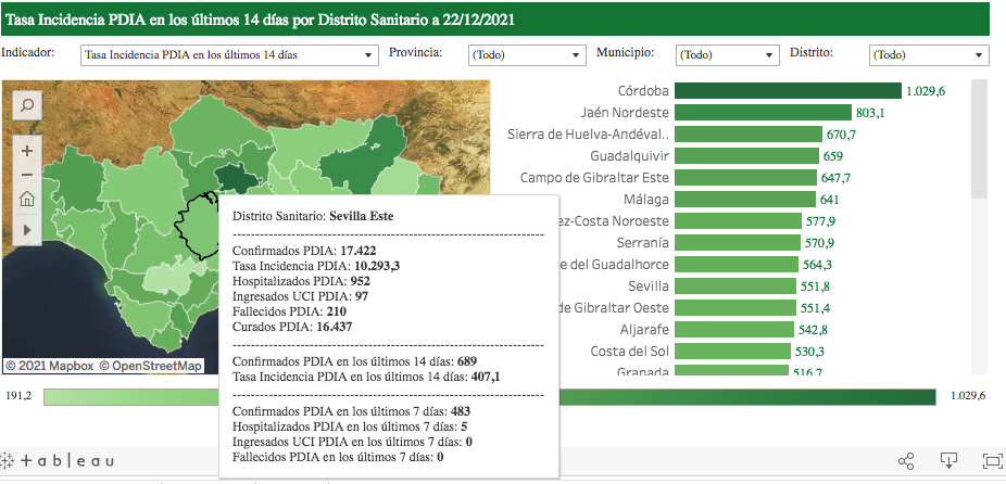 El Distrito Sanitario Este, al que pertenece la localidad, continúa aumentado las cifras, acumulando en los últimos 14 días 689 contagios, lo que supone una incidencia acumulada de 407,1 por cada cien mil habitantes.