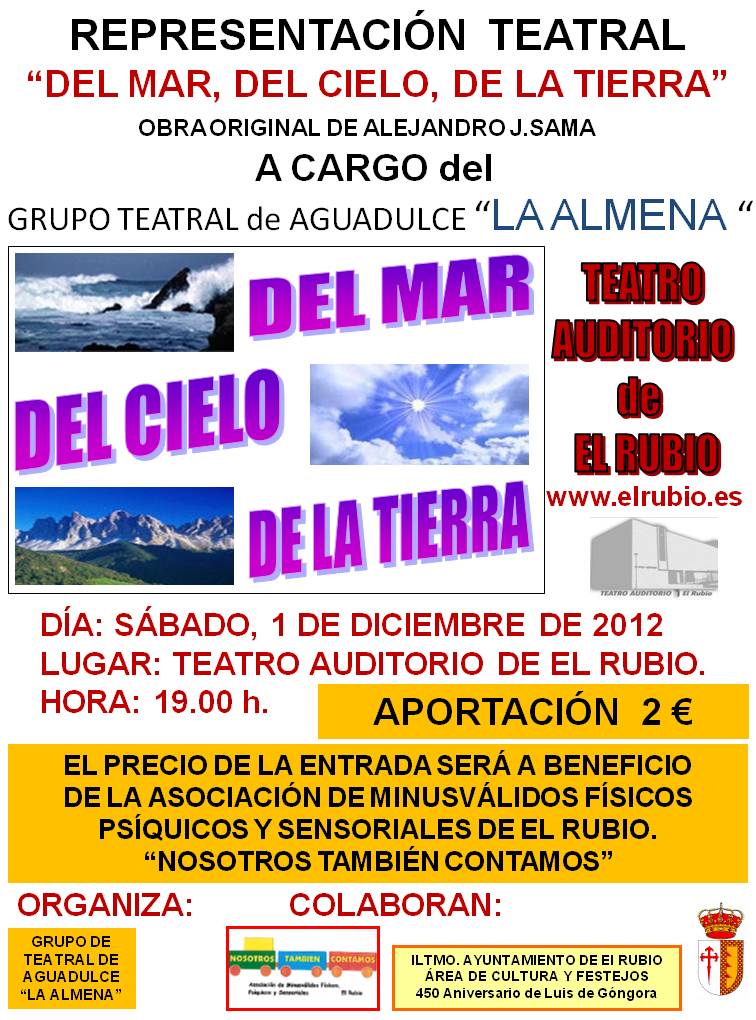 LAS ENTRADAS A 2 ? SERÁN A BENEFICIO DE LA ASOCIACIÓN "NOSOTROS TAMBIÉN CONTAMOS" DE EL RUBIO E INTERPRETADO POR EL GRUPO TEATRAL DE AGUADULCE "LA ALMENA".