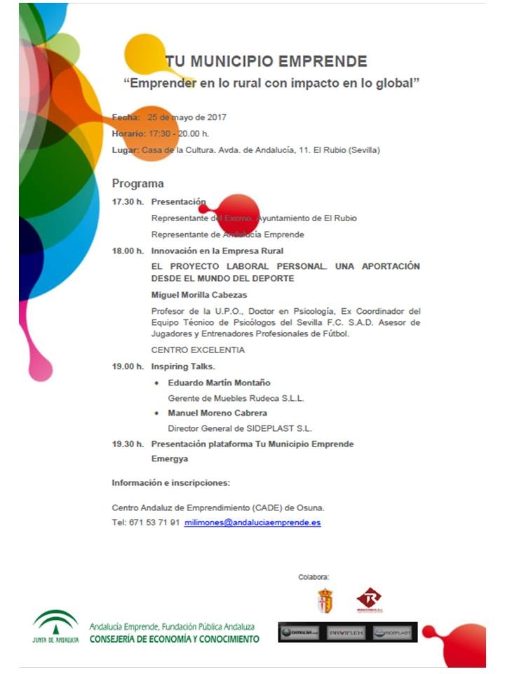Miércoles 24 de Mayo de 2017 a las 10:30 Lugar: Agrícola El Rubio - Ctra.Aguadulce s/n - El Rubio (Sevilla)