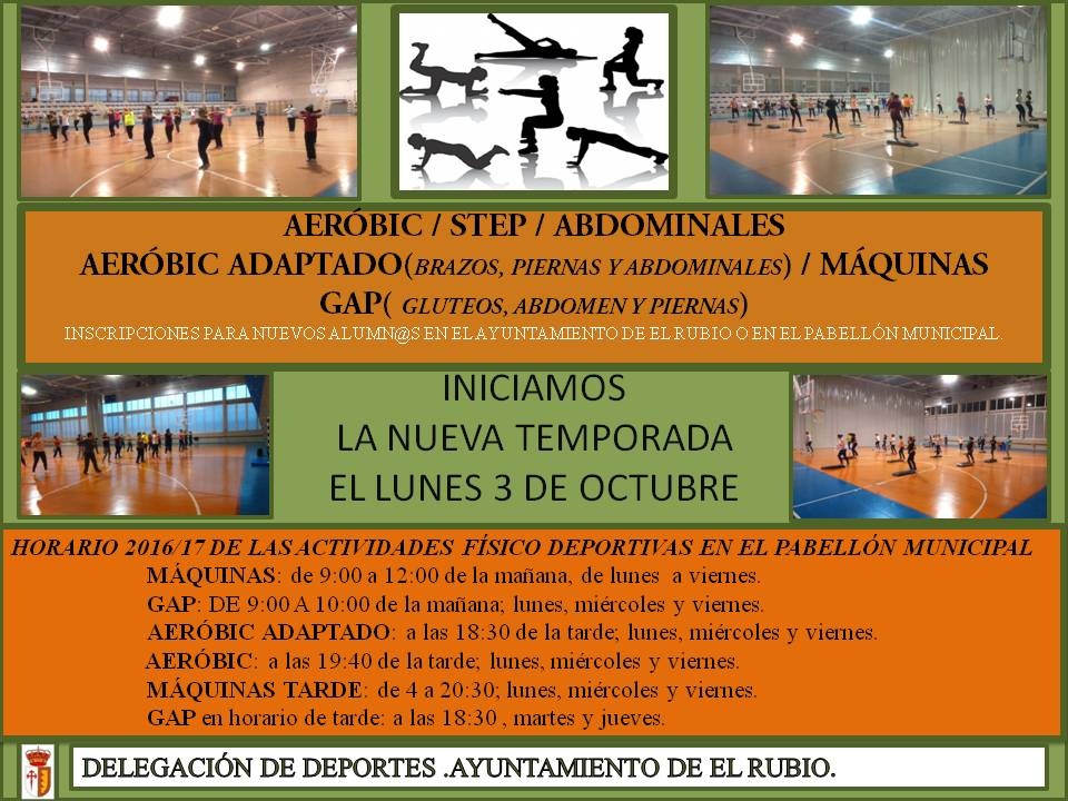 HORARIO DE ACTIVIDADES FISICO DEPORTIVAS EN EL PABELLÓN MUNICIPAL.