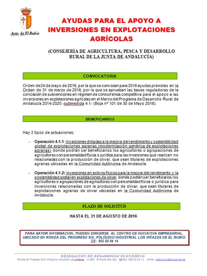 AYUDAS PARA EL APOYO A INVERSIONES EN EXPLOTACIONES AGRÍCOLAS.
