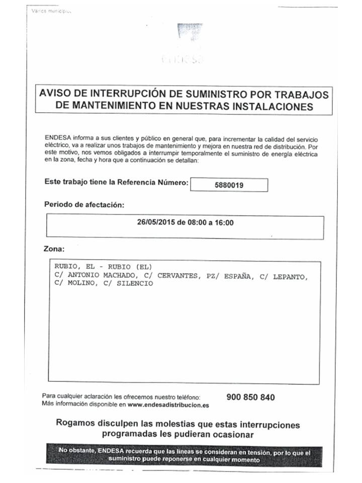 CORTE SUMINISTRO DE LUZ.