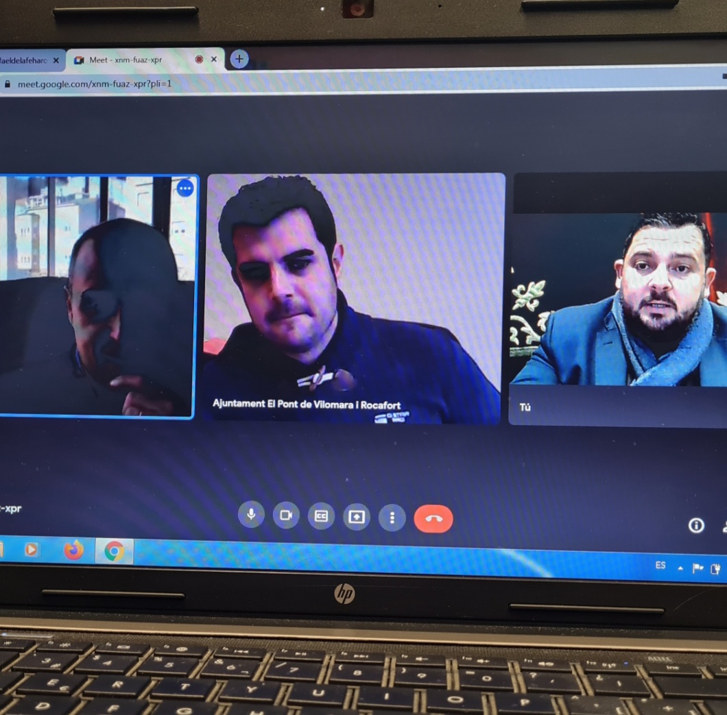 El alcalde de El Rubio, Rafael de la Fe, junto al alcalde de Sant Joan de Vilatorrada, Jordi Solernou, y el alcalde de Pont de Vilomara, Enric Campàs, han mantenido un encuentro telemático para preparar un intercambio entre sus municipios.