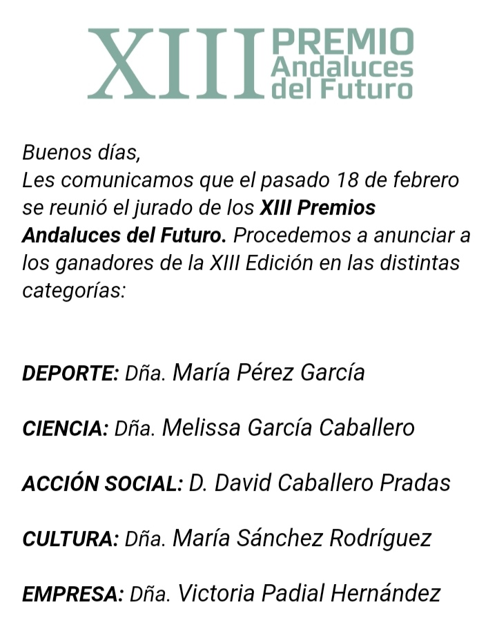 El rubeño DAVID CABALLERO PRADAS ha sido el ganador en los XIII PREMIOS ANDALUCES DEL FUTURO