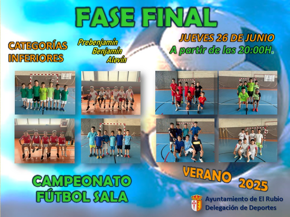 El próximo jueves 26 de junio se disputa la fase final de las categorías inferiores del campeonato de verano de fútbol sala.